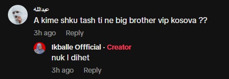 Në një video të postuar sonte, ku ajo trajton një temë rreth debatit për “degjenerimin” në formatin Big Brother, një ndjekës e pyet drejtpërdrejt: “A kime shku tash ti ne big brother vip kosova ??”