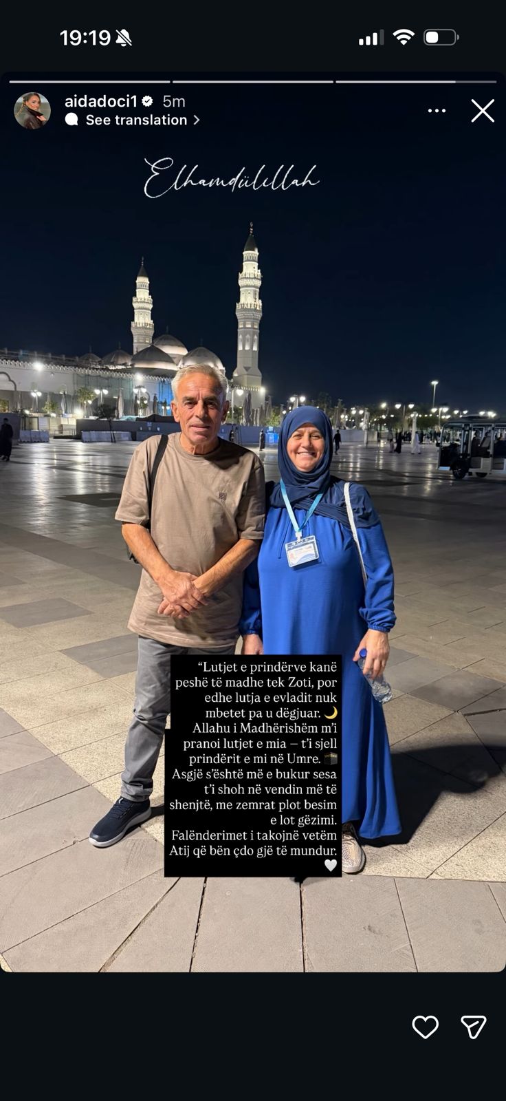 Në një postim emocionues në Instagram, ku shihen prindërit e saj të lumtur para Xhamisë së Profetit në Medinë (një tjetër ndalesë e rëndësishme gjatë këtij udhëtimi), Aida ka shprehur gjithë mirënjohjen e saj.