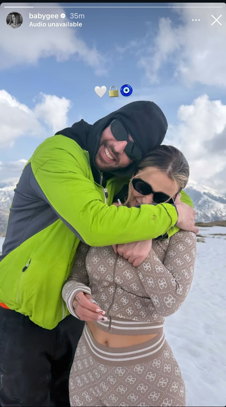 Në imazhin e publikuar, artistja shfaqet mjaft e lumtur dhe e qeshur në krahët e partnerit të saj. Megjithatë, Baby G ka zgjedhur të mos e zbulojë identitetin e djalit që i ka vjedhur zemrën. Fytyra e tij nuk dallohet qartë pasi mban syze dielli dhe kapuç, duke bërë që ai të mbetet ende një personazh misterioz për publikun.