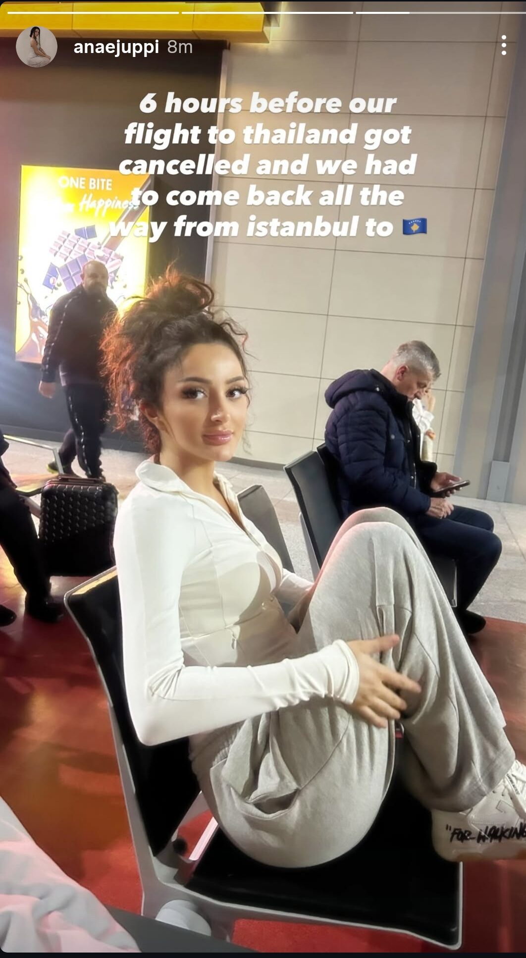 ​”6 orë para fluturimit tonë për në Tajlandë, u anulua dhe na u desh të kthehemi gjithë atë rrugë nga Stambolli në Kosovë”, – ka shkruar Ana.