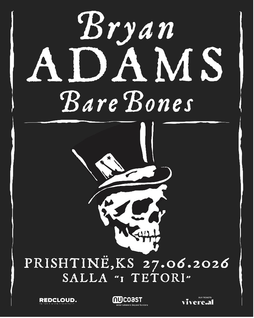 Pas suksesit të jashtëzakonshëm të koncertit në Tiranë në majin e kaluar, Prishtina është gati të mirëpresë një nga zërat më ikonikë të muzikës rock, pasi Bryan Adams njofton një performancë shumë të pritur live në Prishtinë, si pjesë e turneut të tij Bare Bones, më 27 qershor 2026.