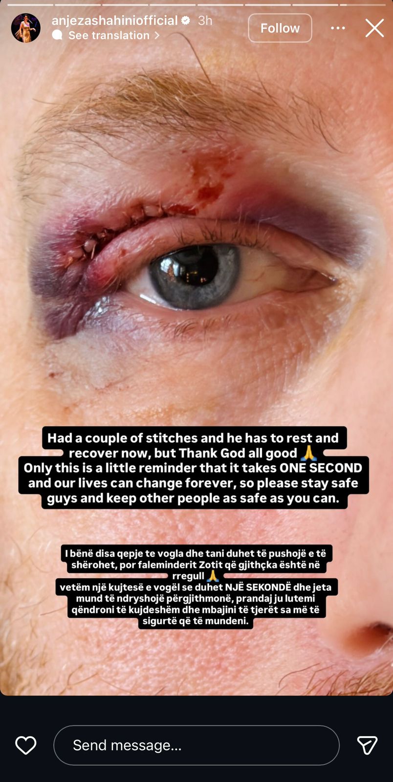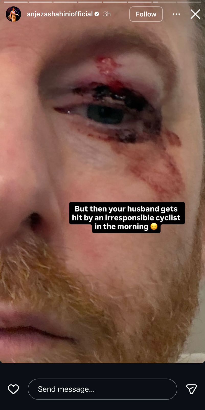 Në një Instagram Story shokues, ajo ka treguar imazhin e burrit të saj, me sy të lënduar dhe të mbuluar me gjak, pas një aksidenti të papritur.
