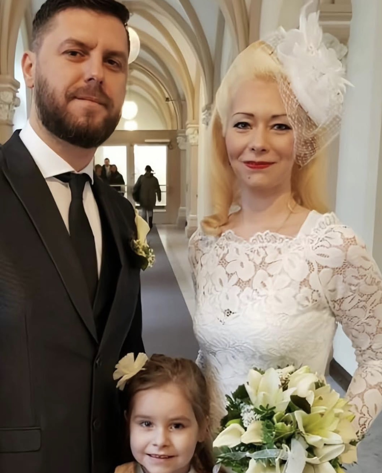 Në fotot e qarkulluara, çifti shfaqet në atë që duket si dita e tyre e martesës, ku bashkëshortja mban një vello elegante dhe një buqetë me lule të bardha.
