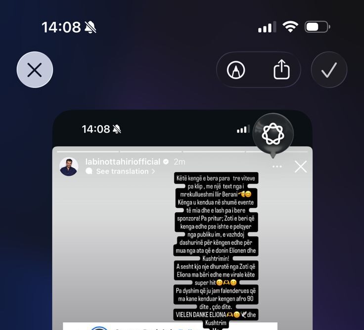 Labinot Tahiri, ka shprehur mirënjohjen e tij të thellë për dy nga ish-banorët e formatit “Big Brother VIP”, Elionën dhe Kushtrimin. Përmes një postimi në llogarinë e tij në Instagram, Labi i ka falënderuar ata publikisht pasi kënga e tij “Zemra e re” mori një vëmendje të jashtëzakonshme dhe u shndërrua në hitin viral të momentit.