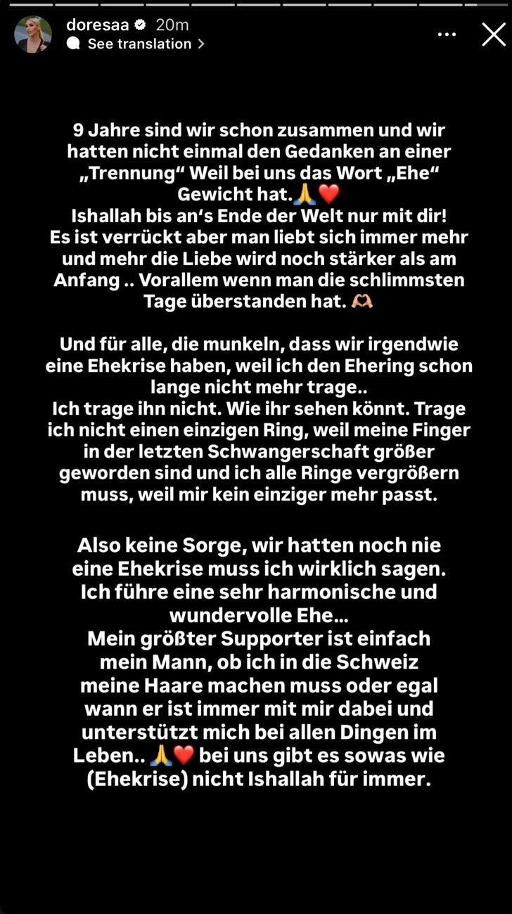 Përmes një postimi të gjatë në gjuhën gjermane në Instastory, ajo i ka dhënë fund çdo dyshimi për një krizë të mundshme në çift.