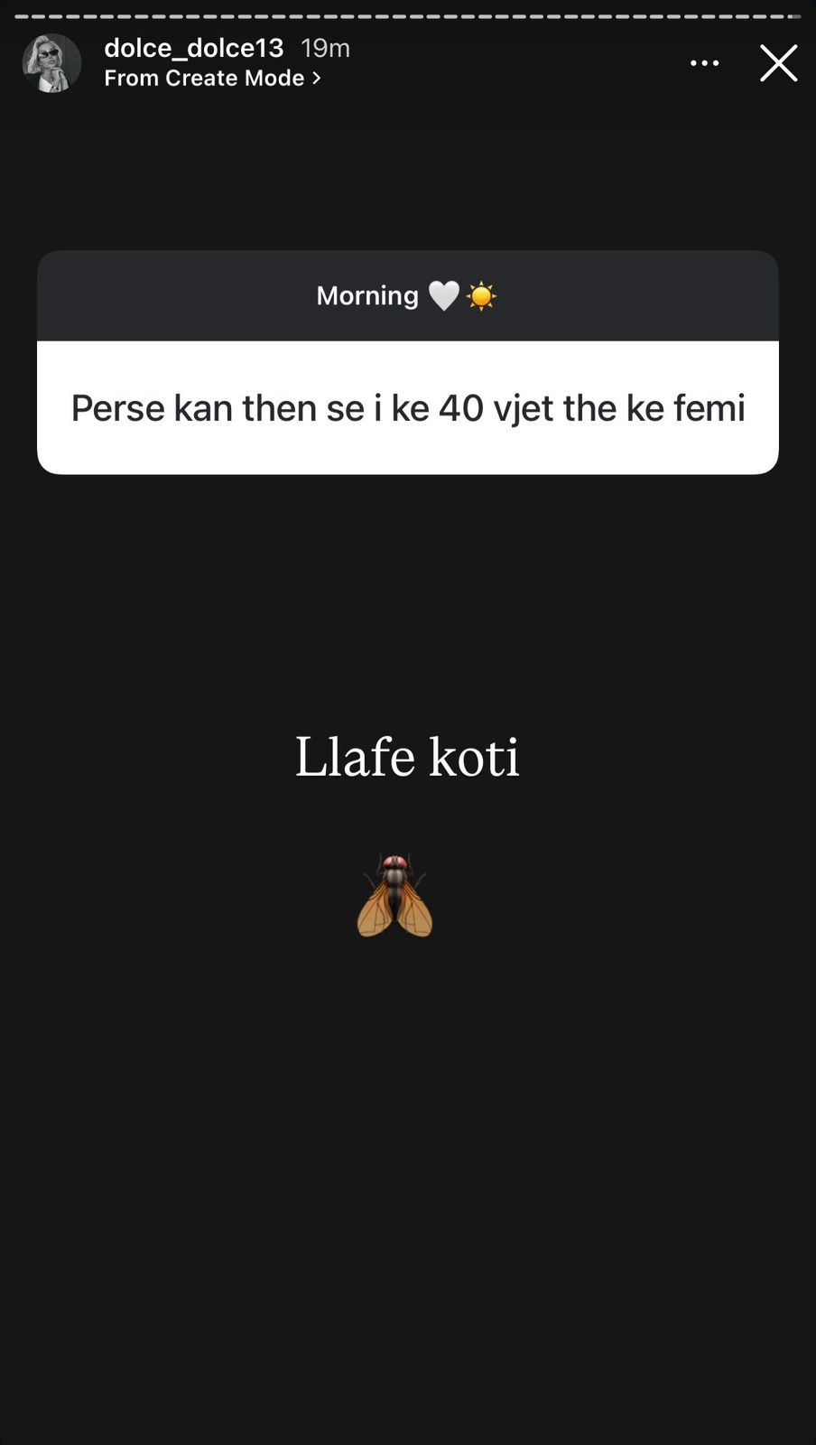E pyetur më tej nga një ndjekës tjetër se pse u hapën fjalë që ajo është 40 vjeçe dhe ka fëmijë, Dolce e mbylli këtë kapitull pa i dhënë shumë rëndësi, duke i quajtur thjesht: “Llafe koti”.