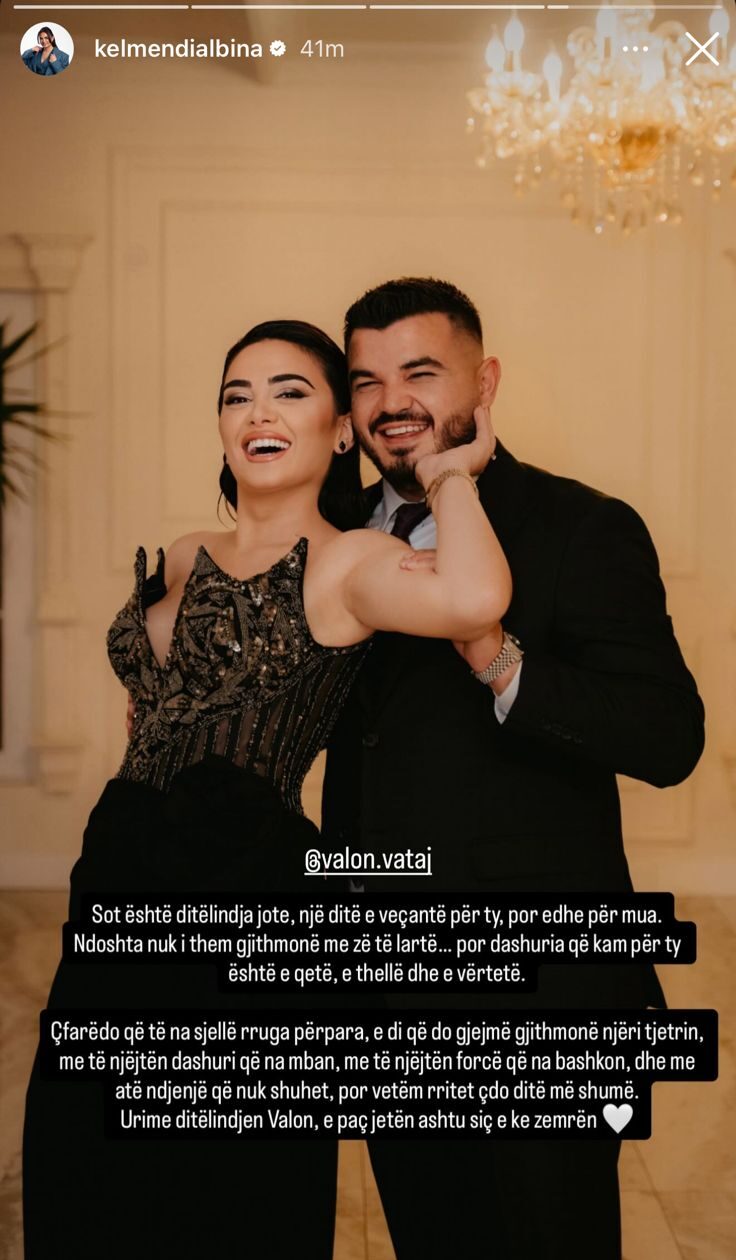 “Çfarëdo që të na sjellë rruga përpara, e di që do gjejmë gjithmonë njëri tjetrin, me të njëjtën dashuri që na mban, me të njëjtën forcë që na bashkon, dhe me atë ndjenjë që nuk shuhet, por vetëm rritet çdo ditë më shumë. Urime ditëlindjen Valon, e paç jetën ashtu siç e ke zemrën.”