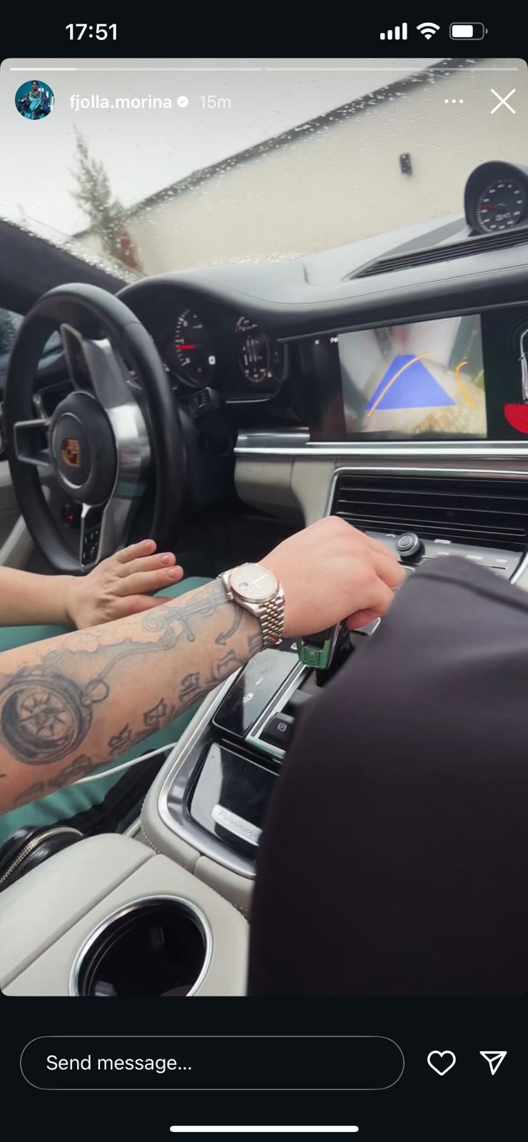 Në njërën prej pamjeve, dyshja ndodhet në një veturë luksoze, ndërsa në një tjetër foto, Fjolla pozon pranë tij me buzëqeshje dhe një energji që nuk kalon pa u vënë re.