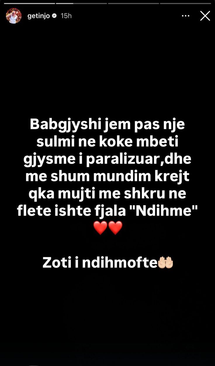 Këto postime kanë mobilizuar fansat e dy artistëve, të cilët kanë dërguar menjëherë një valë mesazhesh mbështetjeje dhe lutjesh për shërimin e shpejtë të gjyshit të tyre. /Prive By Liberta Spahiu