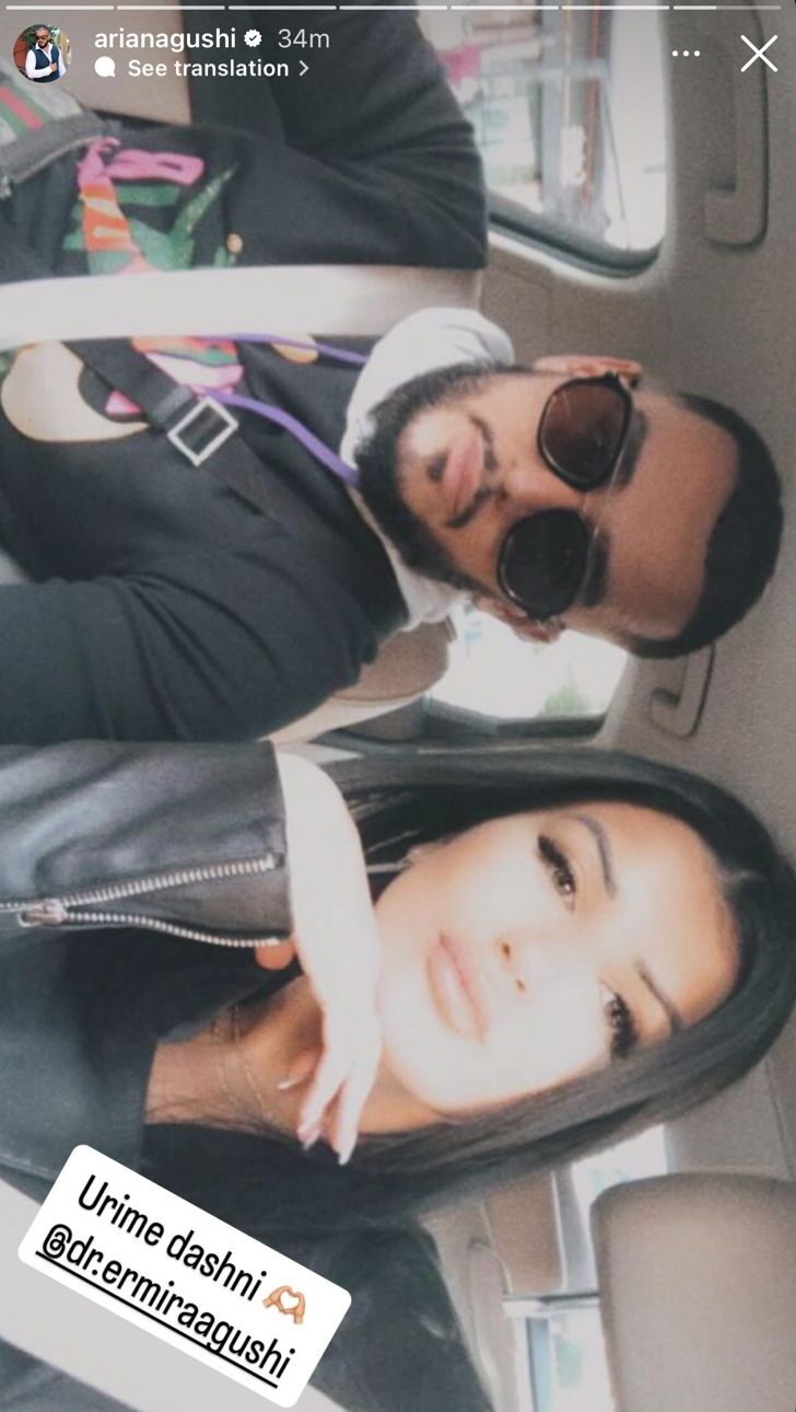 Ndryshe nga statuset e gjata, Gold AG këtë herë ka zgjedhur të shprehet me pak fjalë, por me shumë dashuri. Ai ka ndarë me ndjekësit në InstaStory një “selfie” simpatike krah partneres së tij nga makina. Sipër fotos, reperi ka lënë një mbishkrim të shkurtër dhe tipik nga zemra: “Urime dashni”, duke etiketuar Ermirën.