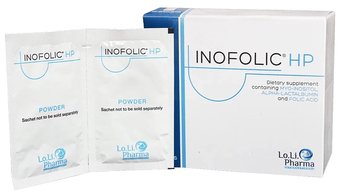 Inofolic®️ HP është një suplement ushqimor i prodhuar nga kompania italiane Lo.Li. Pharma dhe përmban një formulë unike me mio-inozitol, α-laktalbuminë dhe acid folik.