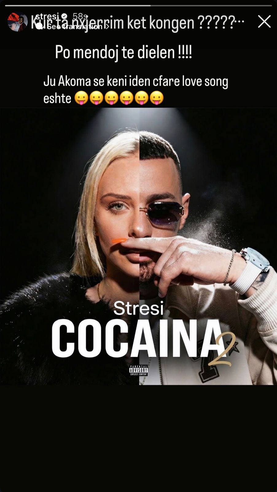 Projekti i ri muzikor titullohet ‘Cocaina’, dhe reperi u shpreh se “ju akoma s’e dini çfarë këngë për dashurinë është”.