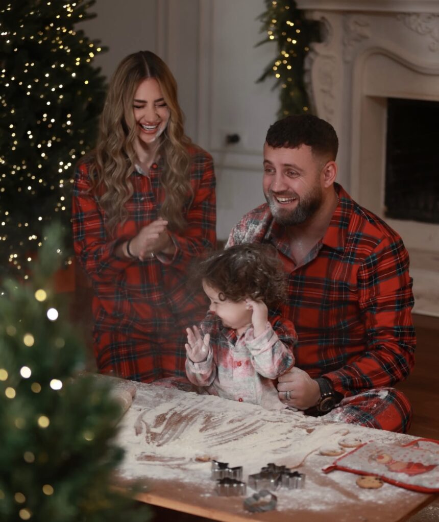 Çifti dhe vogëlushja Luna Mari shfaqen të veshur me pizhame me kuadrata të kuqe e të zeza, duke përcjellë gjithë atmosferën e ngrohtë festive. /Prive By Liberta Spahiu