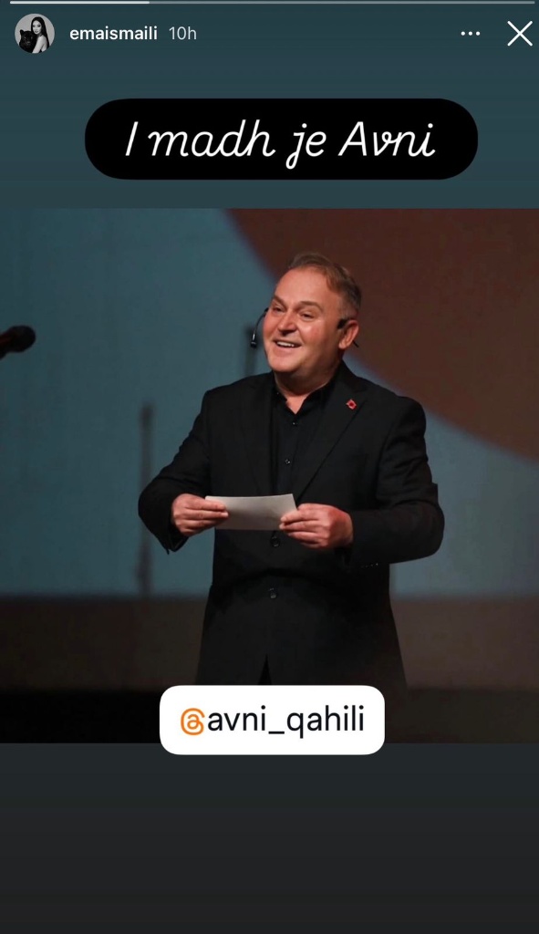 Motra e Adelinës, Ema Ismaili, ka reaguar menjëherë përmes një “story”, ku ka postuar Avniun duke folur, të shoqëruar me fjalët: “I madh je Avni”.