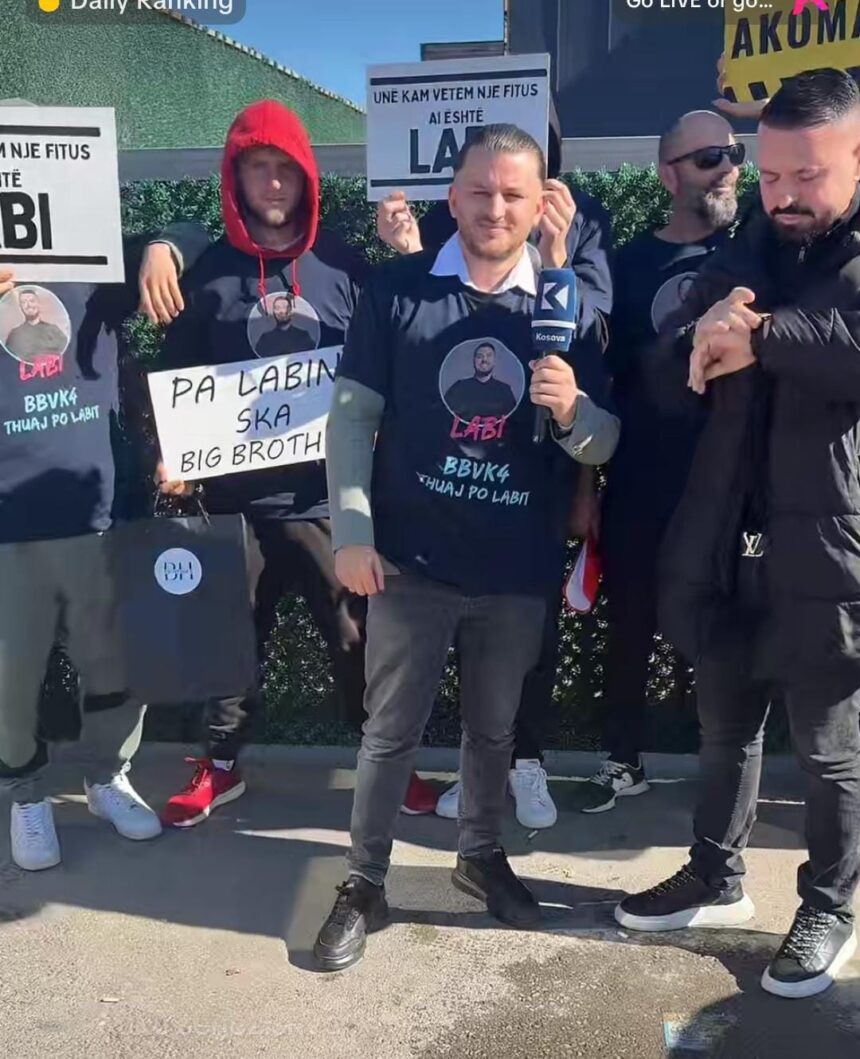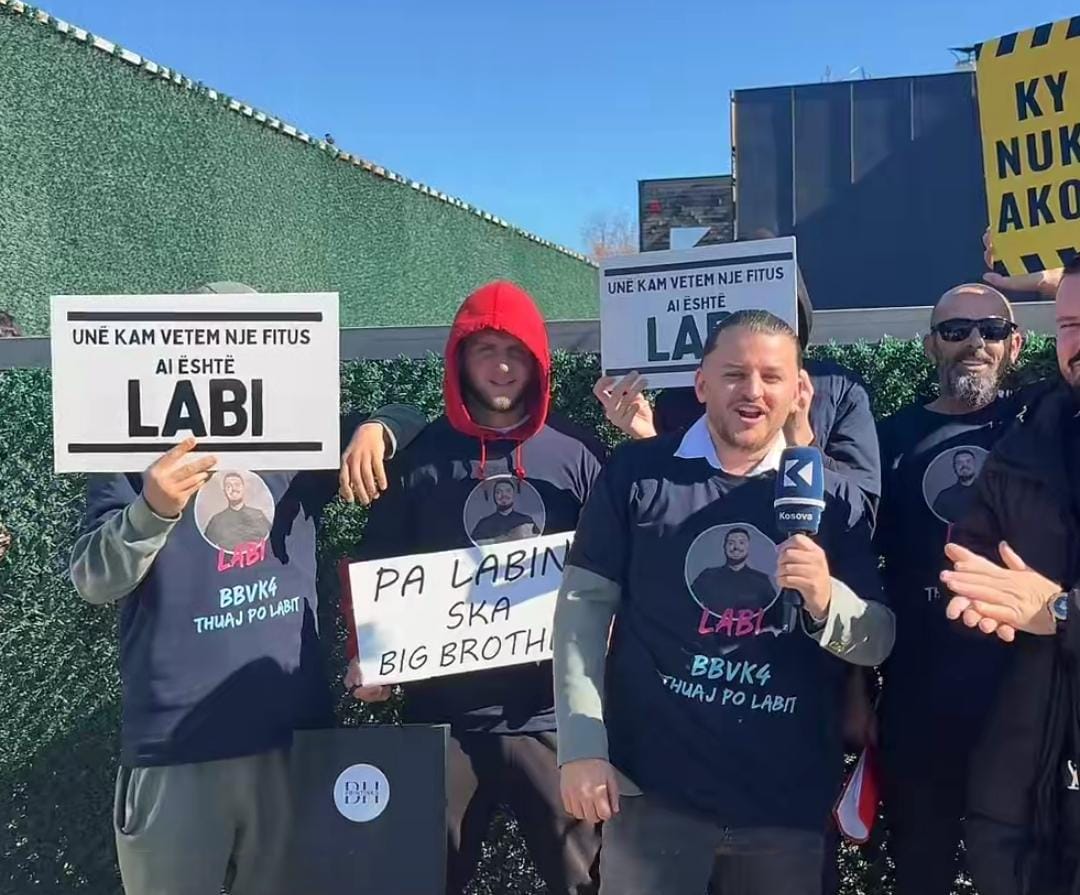 I shoqëruar nga disa mbështetës të tij, më pak dhjetë persona në total, Labi ka dalë para kamerave me pankarta e bluza të personalizuara ku shkruhej “Pa Labin s’ka Big Brother” dhe “Unë kam vetëm një fitues, ai është Labi”.