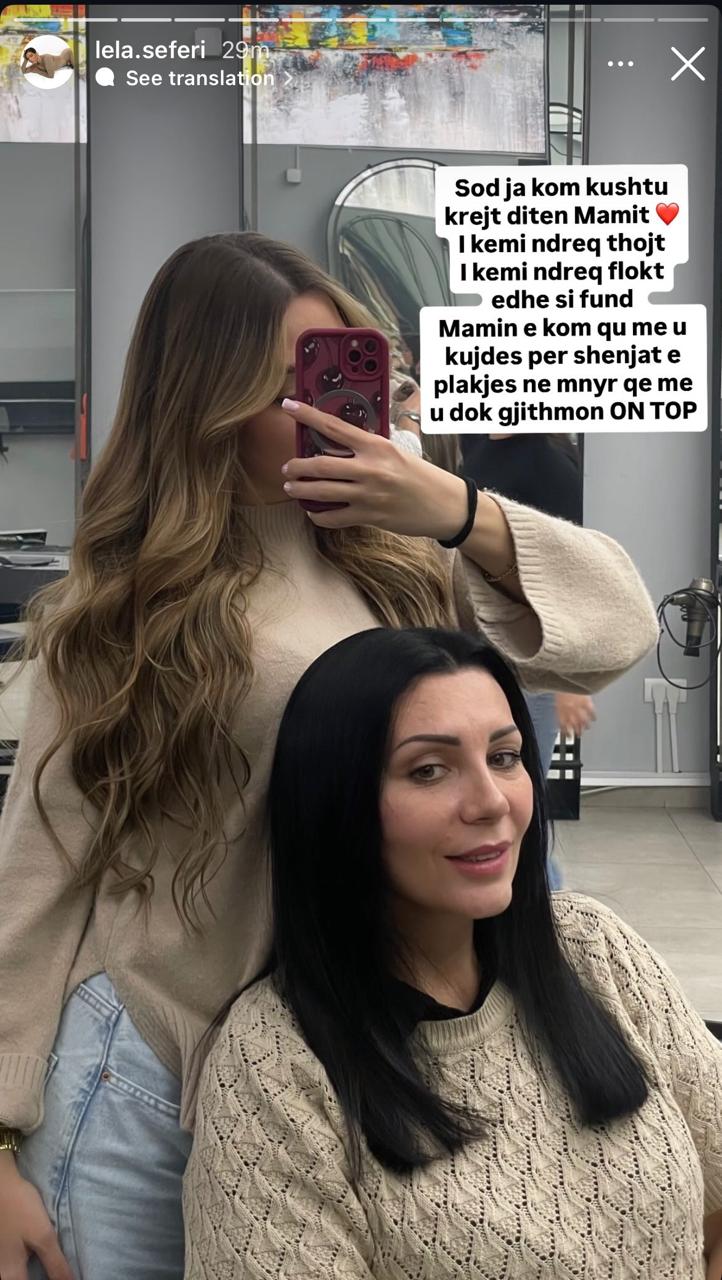“Sot ja kom kushtu krejt ditën mamit. I kemi ndreq thojtë, i kemi ndreq flokët dhe si fund, mamin e kom çu me u kujdes për shenjat e plakjes në mënyrë që me u dok gjithmonë ON TOP,” – ka shkruar Lejla në InstaStory, duke shoqëruar fjalët me një foto ku të dyja shfaqen të buzëqeshura e të lumtura në sallon.