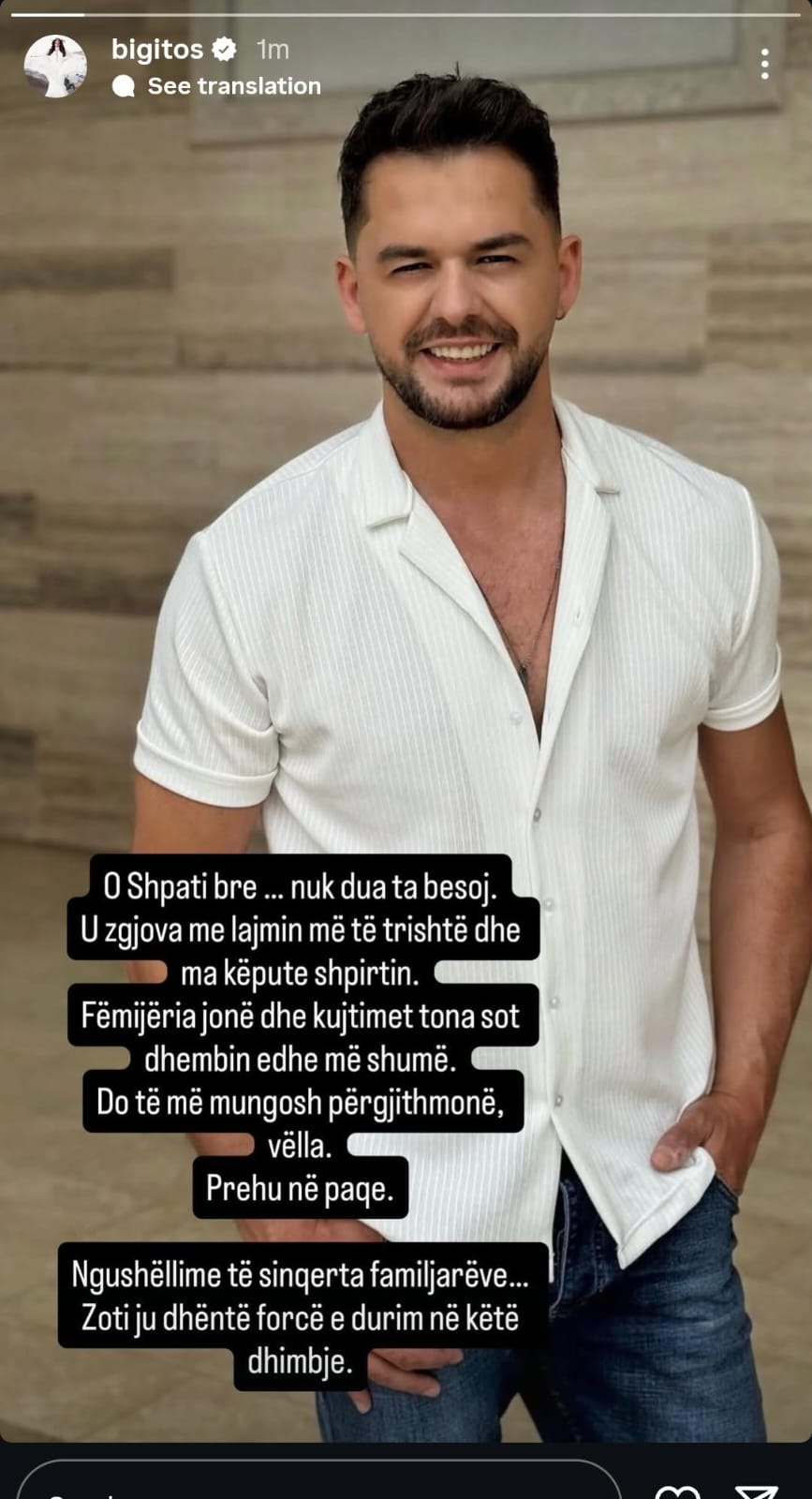 “O Shpati bre … nuk dua ta besoj. U zgjova me lajmin më të trishtë dhe më të këputë shpirtin. Fëmijëria jonë dhe kujtimet tona sot dhembjin edhe më shumë. Do të më mungosh përgjithmonë, vëlla. Prehu në paqe. Ngushëllime të sinqerta familjarëve… Zoti ju dhëntë forcë e durim në këtë dhimbje.”