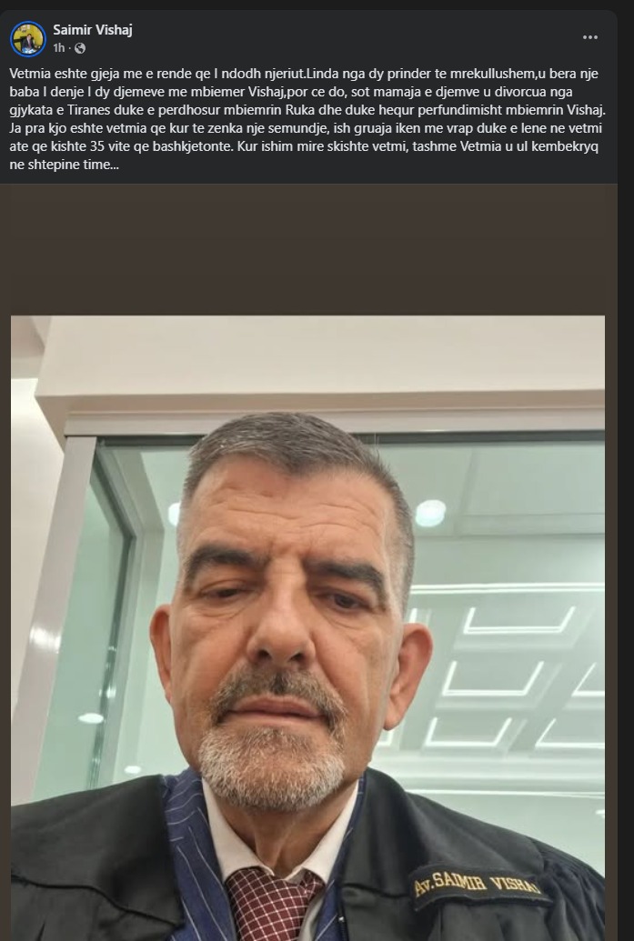 Me fjalë të ndjera, avokati shprehet se “vetmia u ul këmbëkryq” në shtëpinë e tij. Ai ka ngritur pretendime ndaj ish-bashkëshortes, duke u shprehur se largimi i saj ndodhi pikërisht në ditët e tij më të vështira. “Ja pra kjo është vetmia që kur të zënka një sëmundje, ish-gruaja ikën me vrap duke e lënë në vetmi atë që kishte 35 vite që bashkëjetonte,” ka shkruar Vishaj, duke lidhur kështu krisjen e raportit me sfidën e tij shëndetësore.