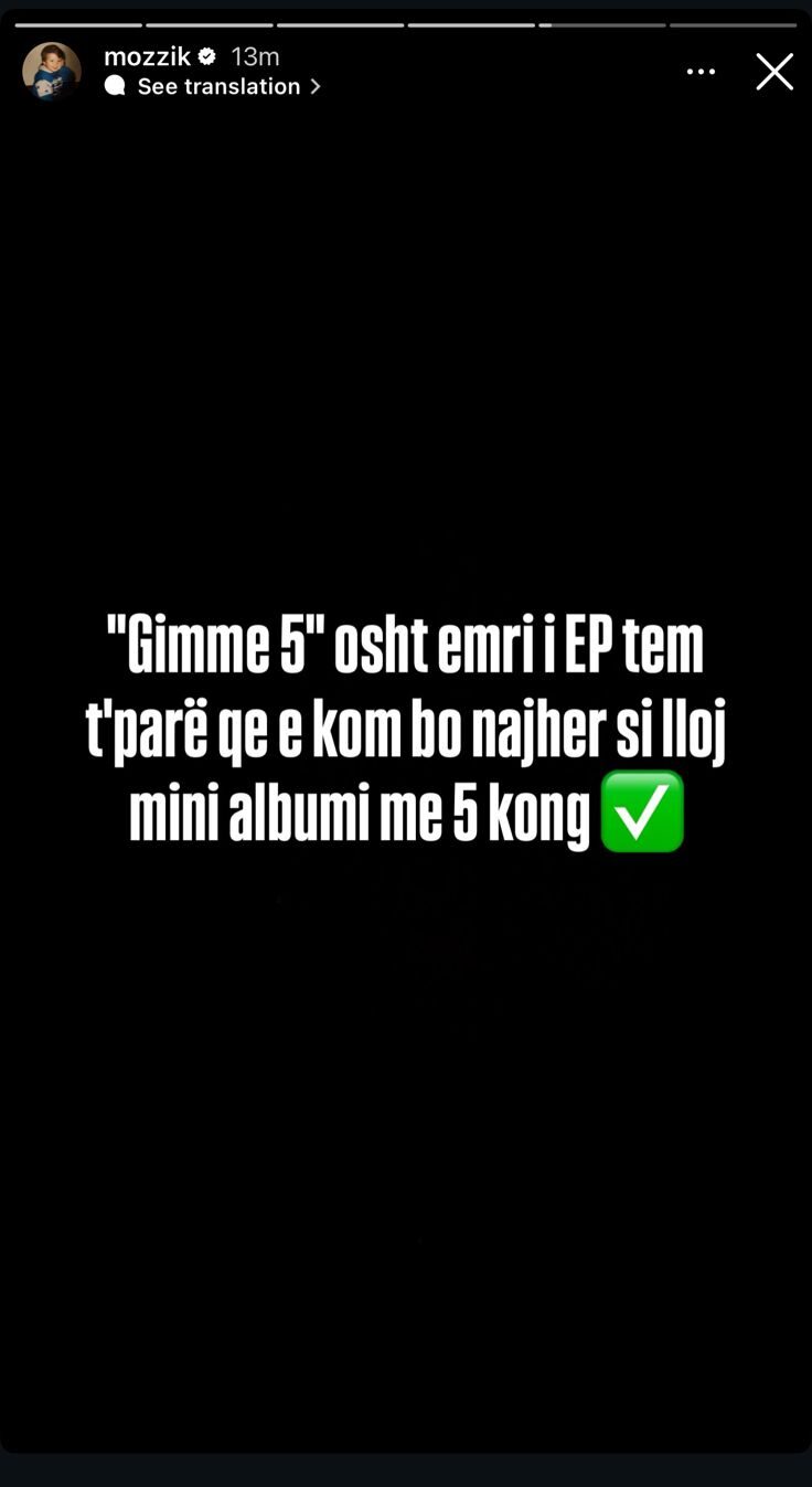 Në një tjetër postim, ai nuk ka kursyer modesti duke e quajtur këtë projekt si “EP-në më të madhe” që po vjen. Ky paralajmërim ka ngritur menjëherë pritshmëritë e fansave, të cilët presin të shohin nëse Mozzik do të eksperimentojë me rryma të reja apo do t’i qëndrojë besnik stilit që e bëri lider në tregun muzikor shqiptar.