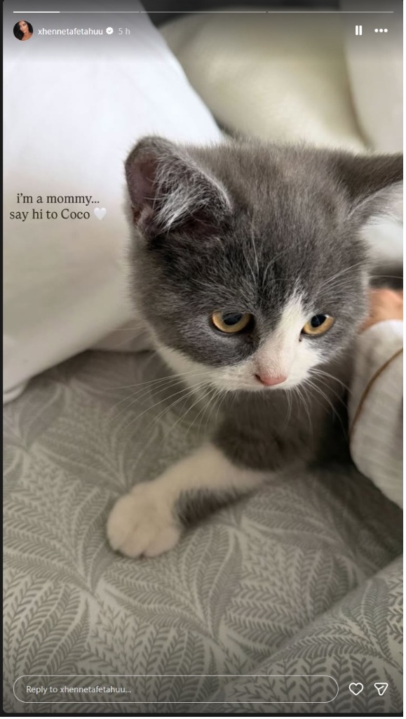 Në fakt, bëhet fjalë për një kotele të vogël dhe shumë të lezetshme të racës gri me të bardhë. Me këtë postim, Xheneta tregon anën e saj të butë jashtë studios duke e prezantuar Coco-n e vogël si “fëmijën” e saj më të ri.