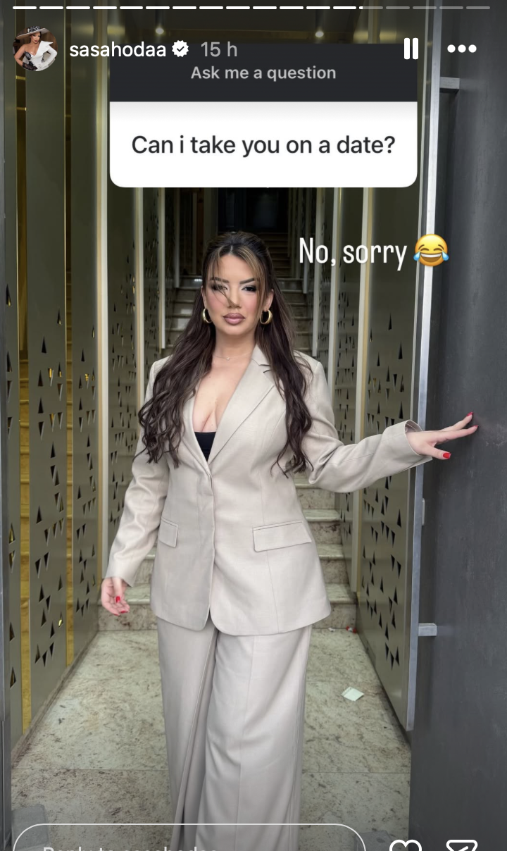 Me një stil të prerë por edhe me humor, Sasa ka kthyer përgjigjen që i ka lënë të gjithë pa fjalë. “Jo, më vjen keq 😂” (No, sorry), ka shkruar ajo, duke i shoqëruar fjalët me një emoji duke qeshur, duke u dhënë kështu një goditje të ëmbël pretendenteve.