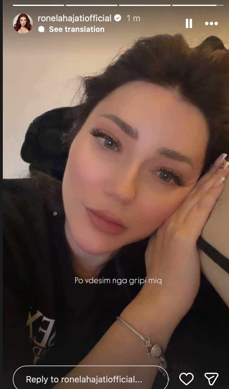 Në imazhin ku shfaqet e shtrirë dhe me një pamje që reflekton lodhje, Ronela ka shkruar: “Po vdesim nga gripi miq”, duke treguar se simptomat e gripit e kanë prekur edhe atë mjaftueshëm sa për ta detyruar të ndalojë aktivitetet e saj të zakonshme.