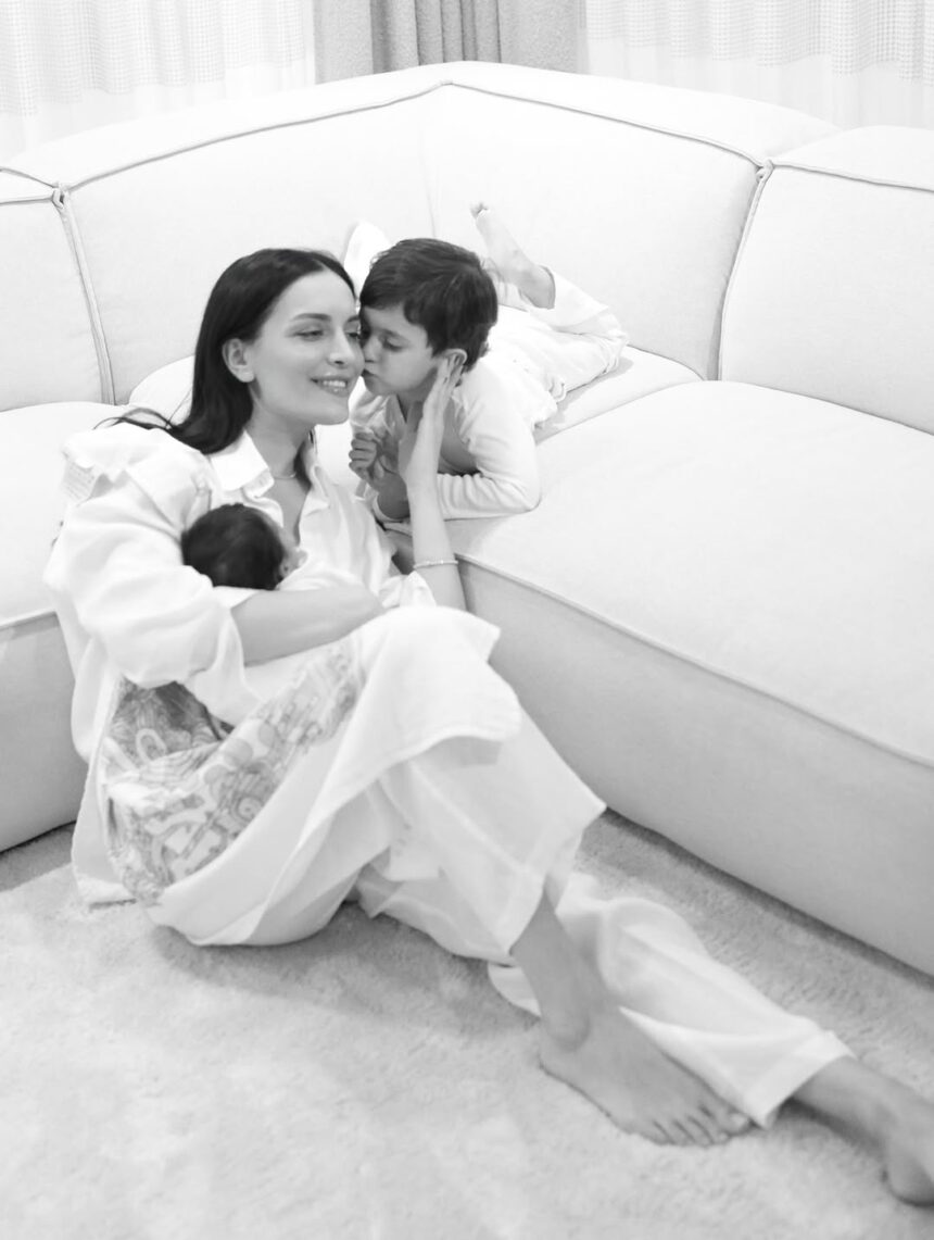 Nëpërmjet një postimi të ëmbël në rrjete sociale, Krenarja ka ndarë një fotografi ku shihet e lumtur me foshnjën e porsalindur në krahë, së bashku me djalin e madh.