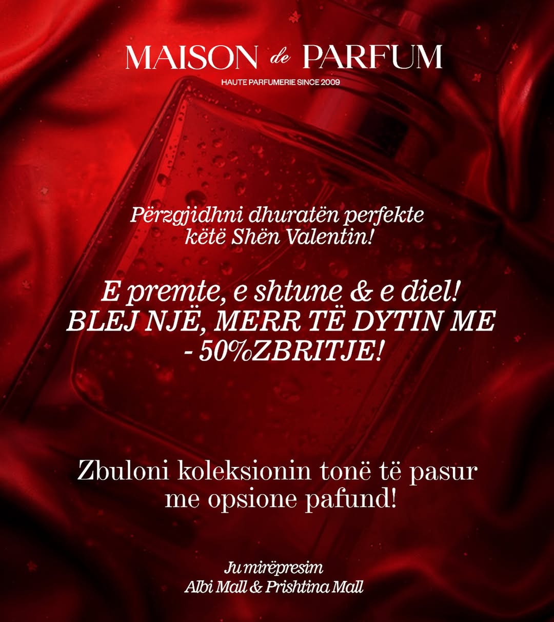 Në prag të festës së Shën Valentinit, Maison de Parfum në Prishtinë ka menduar një surprizë të veçantë për të gjithë adhuruesit e aromave luksoze.