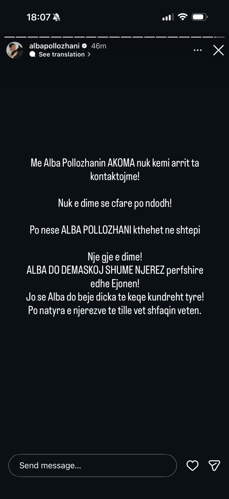 Dhe për këtë situatë rrethi i ngushtë i Albës ka reaguar, duke shprehur shqetësimin e tyre përmes një postimi në Instastory.