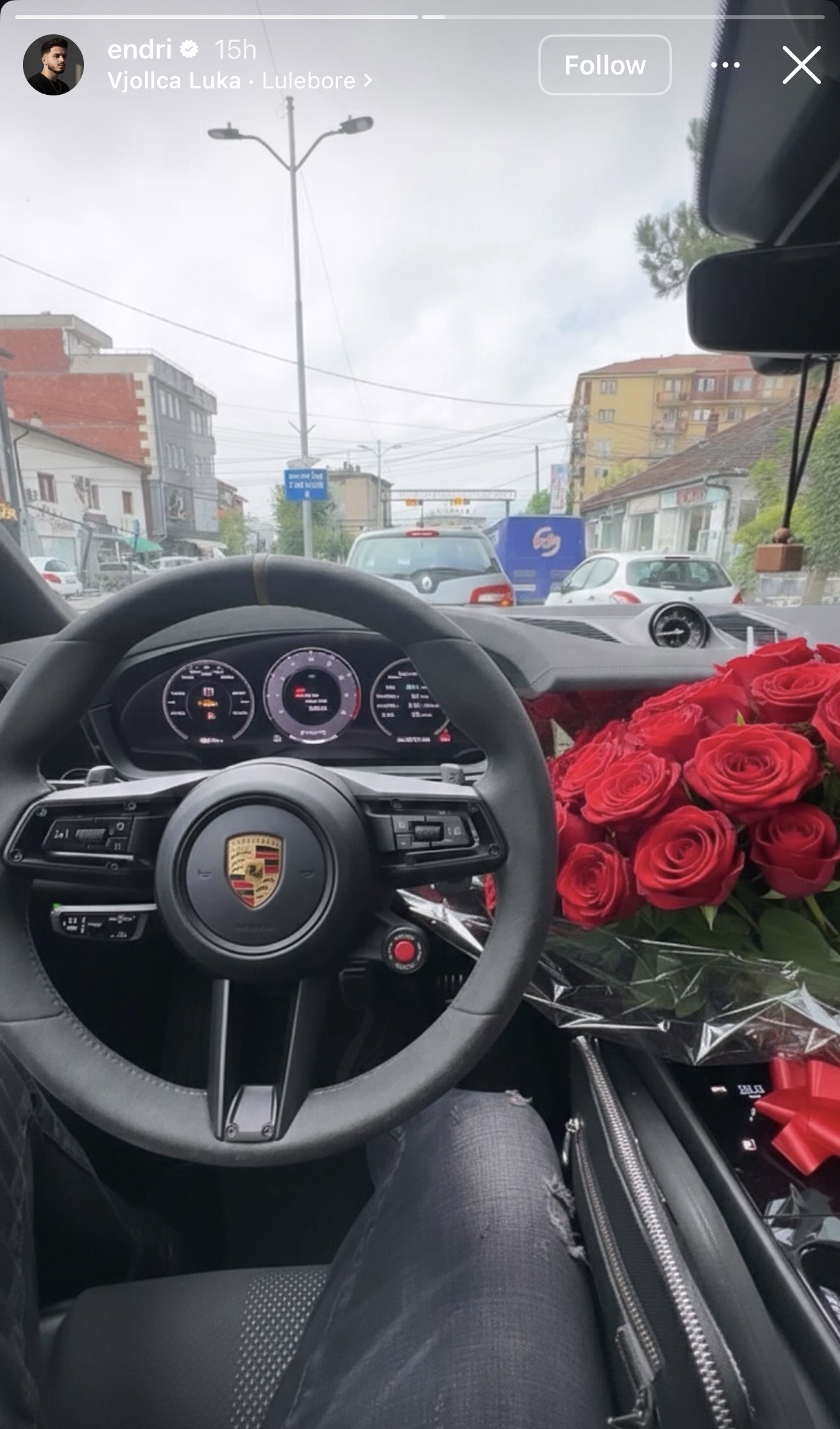 Teksa Benita po kalon ditë të turbullta brenda shtëpisë më të famshme në Kosovë, ku situatat dhe dinamikat e saj me banorët e tjerë kanë qenë kryefjala e mediave rozë, Endri është shfaqur më romantik se kurrë. Në një postim të bërë orët e fundit në Instagram, ai ka publikuar një foto nga brendësia e makinës së tij luksoze Porsche, ku në sediljen e pasagjerit dominon një buqetë gjigante me trëndafila të kuq.