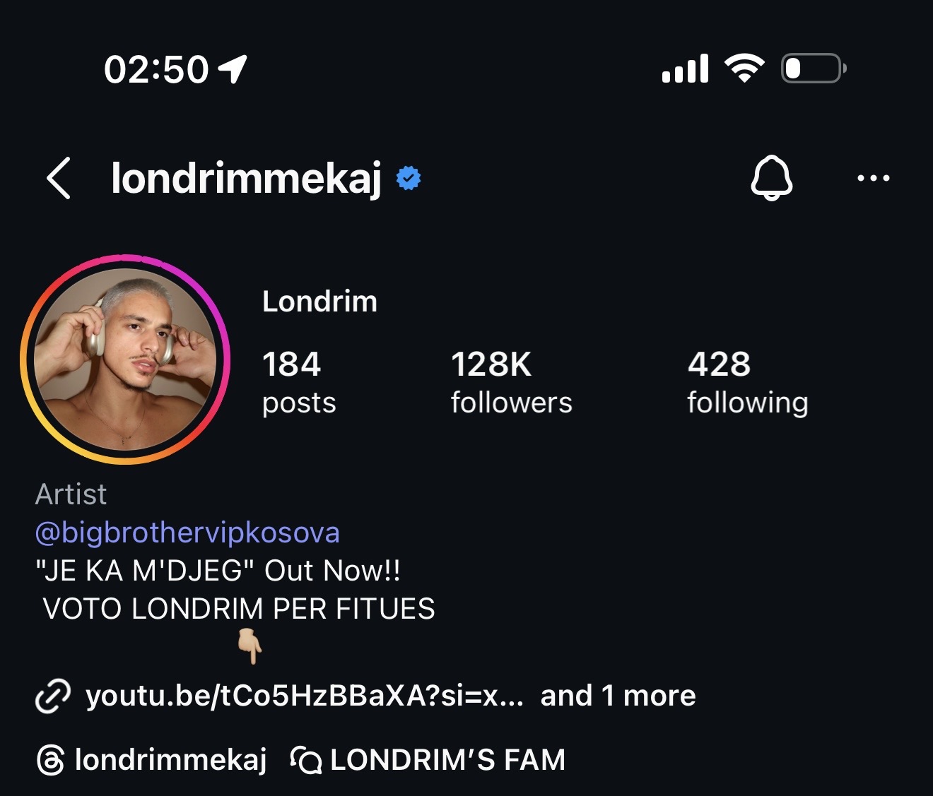 Që pas momentit të triumfit mbrëmë, llogaria e tij zyrtare në Instagram ka përjetuar një “boom” të vërtetë. Vetëm brenda 8 orëve të para pas fitores, profilit të Londrimit i janë shtuar plot 12 mijë ndjekës të rinj (duke arritur shifrën e 128 mijë ndjekësve në total).