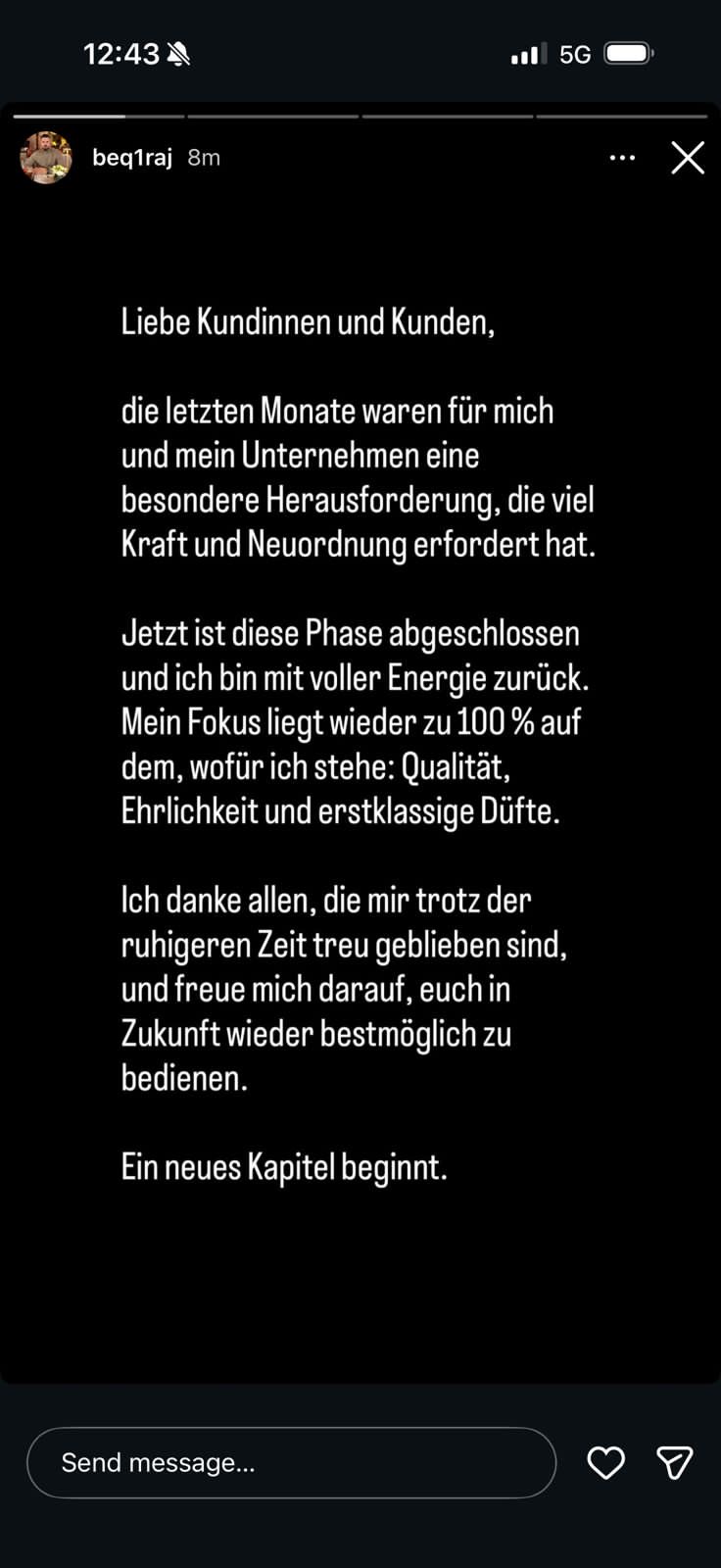 Në një njoftim të gjatë të shkruar në gjermanisht, Gerti u është drejtuar ndjekësve dhe klientëve të tij duke pranuar hapur se muajt e fundit kanë qenë një “sfidë e veçantë” që kërkoi shumë forcë dhe një “riorganizim” rrënjësor. Ai shkruan tekstualisht: “Të dashur klientë, muajt e fundit ishin një sfidë për mua dhe kompaninë time… Tani kjo fazë ka përfunduar dhe unë jam rikthyer me energji të plotë.” Fjalët e zgjedhura me kujdes, si nevoja për “forcë” dhe fakti që po e mbyll një “fazë” të vështirë, përputhen me raportimet për problemet e tij me drejtësinë.