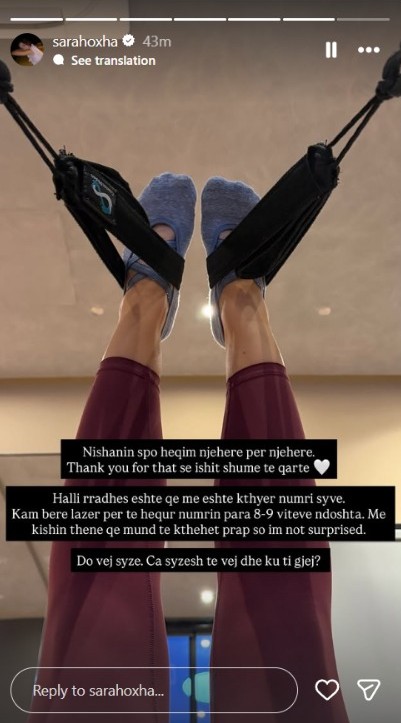 Së fundmi, përmes një postimi në “Instagram Story”, Sara ka ndarë me ndjekësit një shqetësim që lidhet me shëndetin e syve të saj, duke zbuluar se i është rikthyer dioptria.