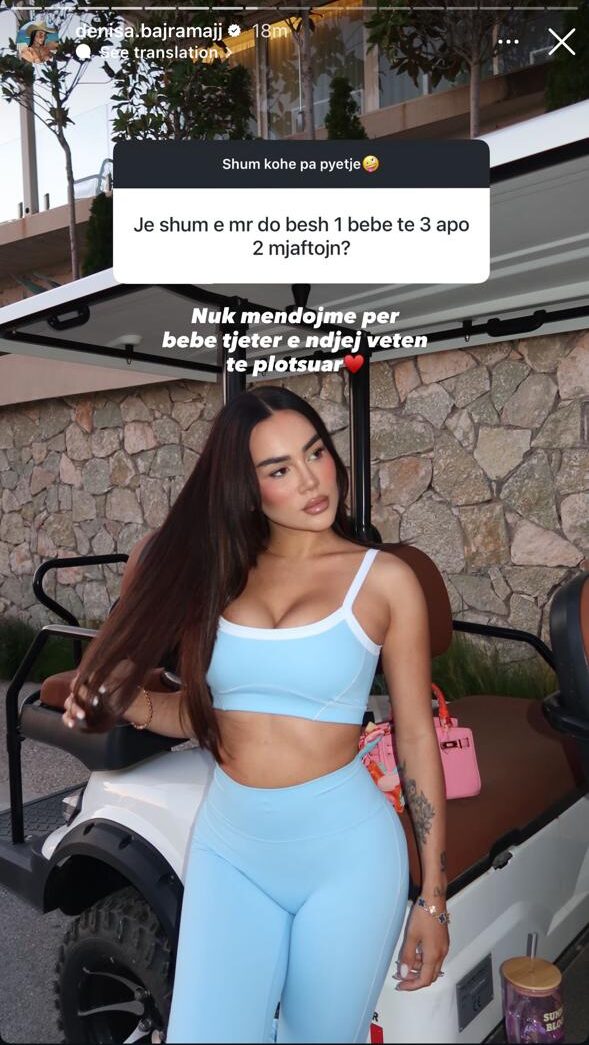 Denisa ka qenë shumë e qartë në përgjigjen e saj, duke lënë të kuptohet se për momentin familja e tyre është e kompletuar. “Nuk mendojmë për bebe tjetër, e ndjej veten të plotësuar,” ka shkruar ajo, duke shoqëruar postimin me një emoji zemre, çka tregon se lumturia e saj me dy djemtë është e mjaftueshme.