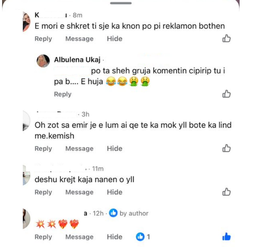 Në stilin e saj, Albulena nuk ka zgjedhur të heshtë. Ajo i ka kthyer një përgjigje të drejtpërdrejtë dhe mjaft ironike komentuesit, duke i përmendur bashkëshorten dhe pasojat që do të kishte nëse ajo do t’i shihte komentet e tij nëpër profilet e femrave të tjera. Kjo përplasje ka marrë menjëherë vëmendje, duke vërtetuar se këngëtarja është e gatshme t’u përgjigjet kritikave pa dorashka teksa shijon klikimet e projektit të saj më të ri. /Prive By Liberta Spahiu