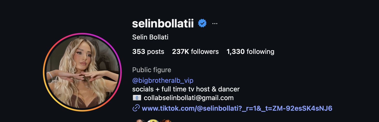 Vetëm dy ditë më pas, numri i ndjekësve të saj ka kapërcyer çdo pritshmëri, duke arritur në 237,000! Bëhet fjalë për një rritje marramendëse prej 44,000 ndjekësish të rinj në vetëm 48 orë.