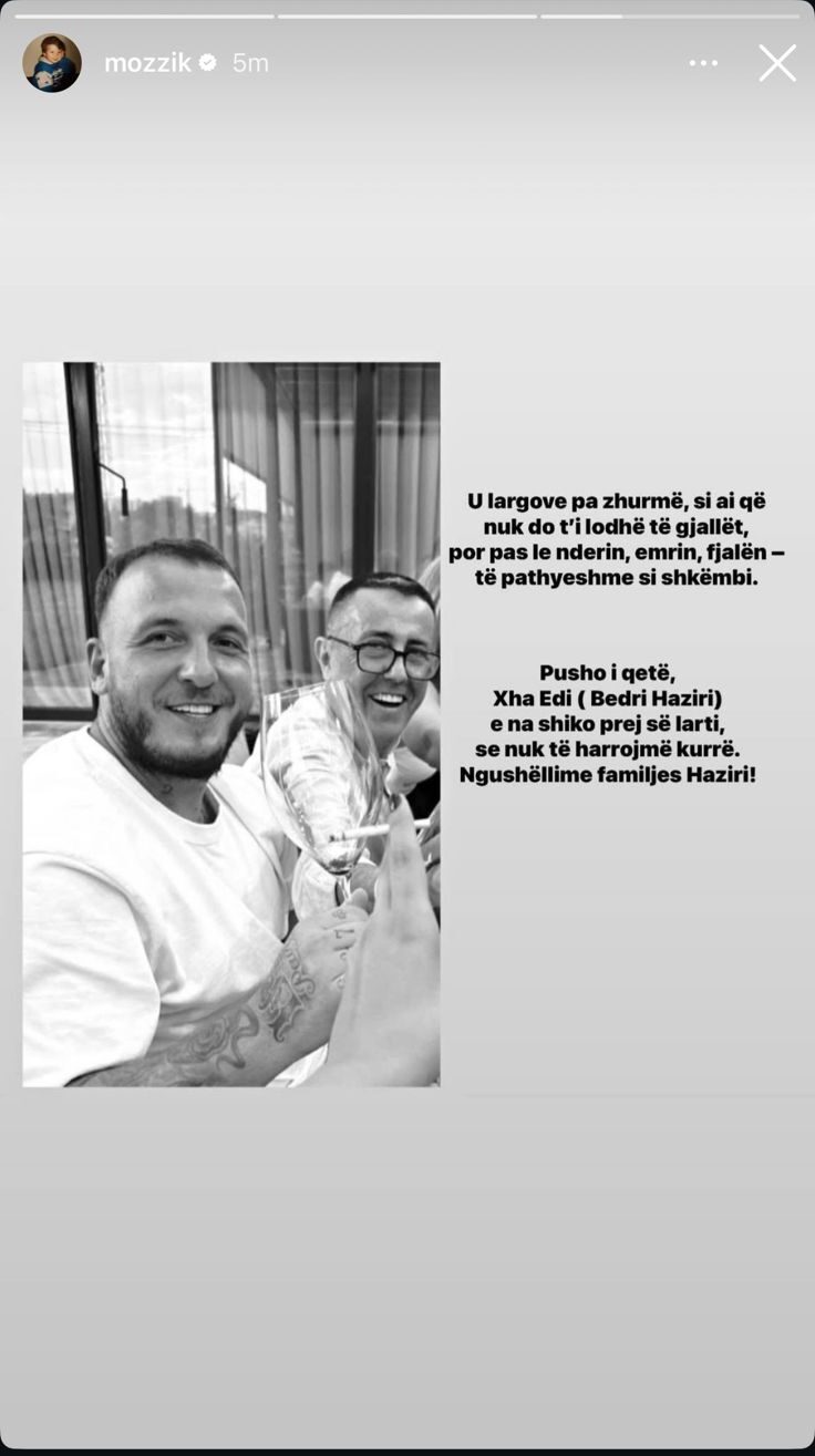 Në mbishkrimin e fotos, Mozzik shkruante fjalë zemre për të ndjerin: