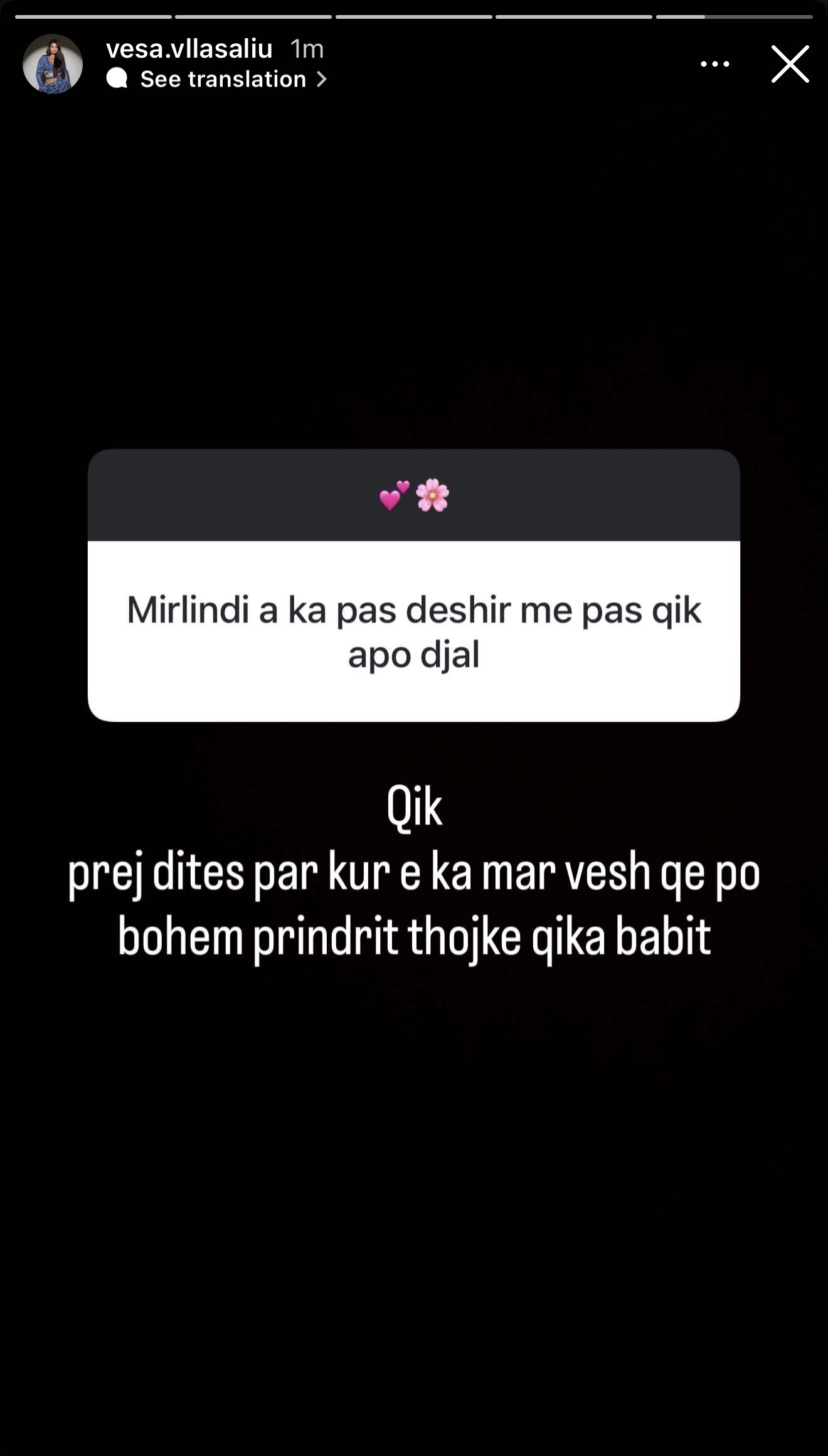 Sipas mbishkrimit të Vesës në video, ky lajm nuk ishte krejtësisht i papritur për futbollistin. Ajo shkroi me shaka: “Lindit ja pat marr mendja ma herët”, duke treguar se Mirlindi e kishte pasur një parandjenjë se do të bëheshin prinder përpara se Vesa të konfirmonte shtatzëninë.