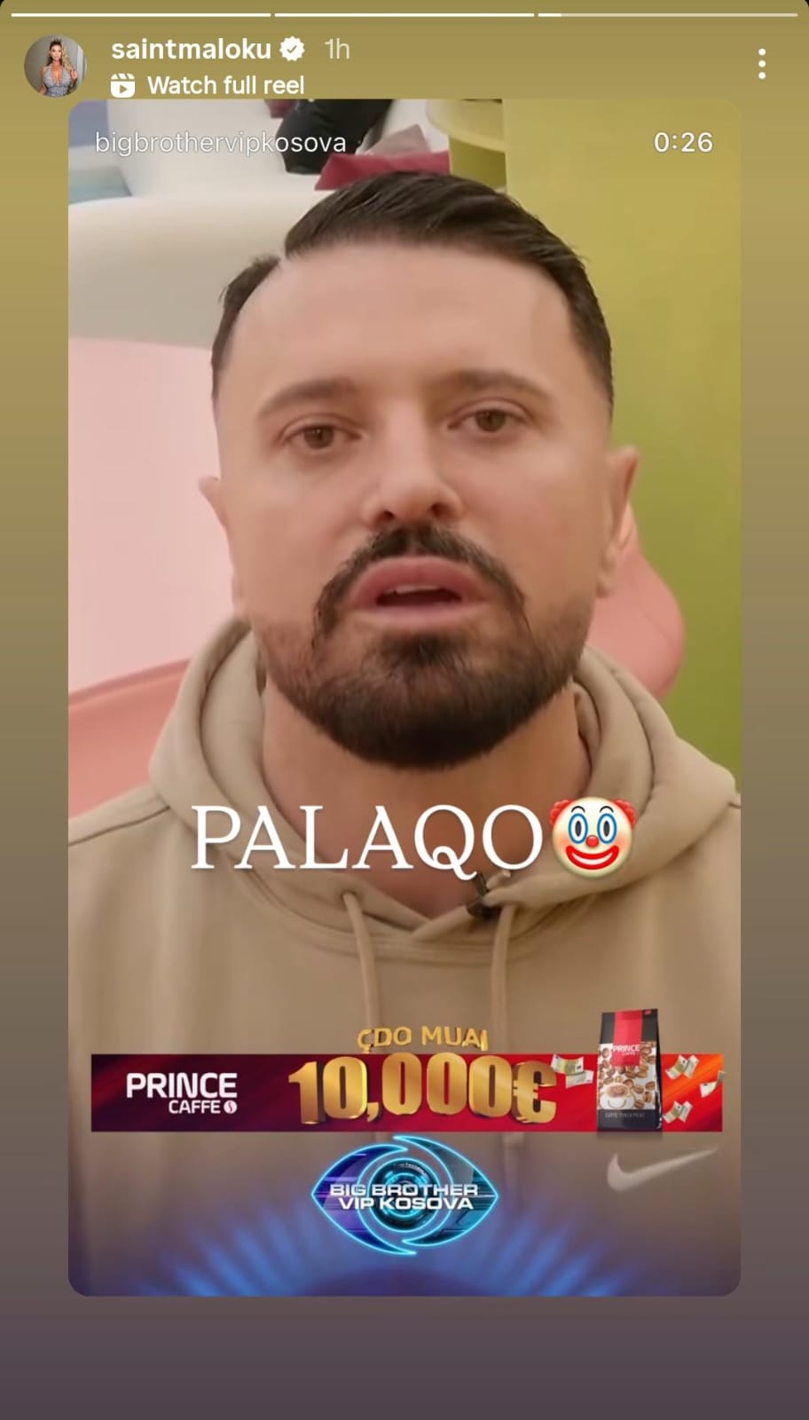 Përmes një postimi në Instastory, Santiana ka ndarë momentin kur Labinoti shfaqet në ekran, duke e shoqëruar me një cilësim të ashpër: “PALAQO”, të shoqëruar me emojin e kllounit.