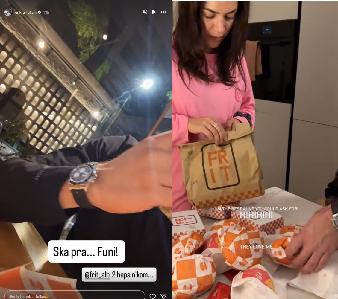 Menjëherë u bë lidhja: është e njëjta orë luksoze dhe karakteristike që Erik Fullani mban vazhdimisht dhe e ka shfaqur shpesh në postimet e tij. Për të vënë “vulën”, vetë Eriku kishte postuar pak më parë një video ku tregonte pikërisht atë orë, teksa shijonte ushqimin nga i njëjti brand.
