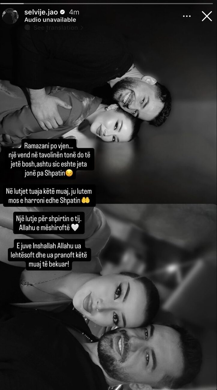 “Në lutjet tuaja këtë muaj, ju lutem mos e harroni edhe Shpatin. Një lutje për shpirtin e tij. Allahu e mëshiroftë,” ka qenë mesazhi i saj prekës.