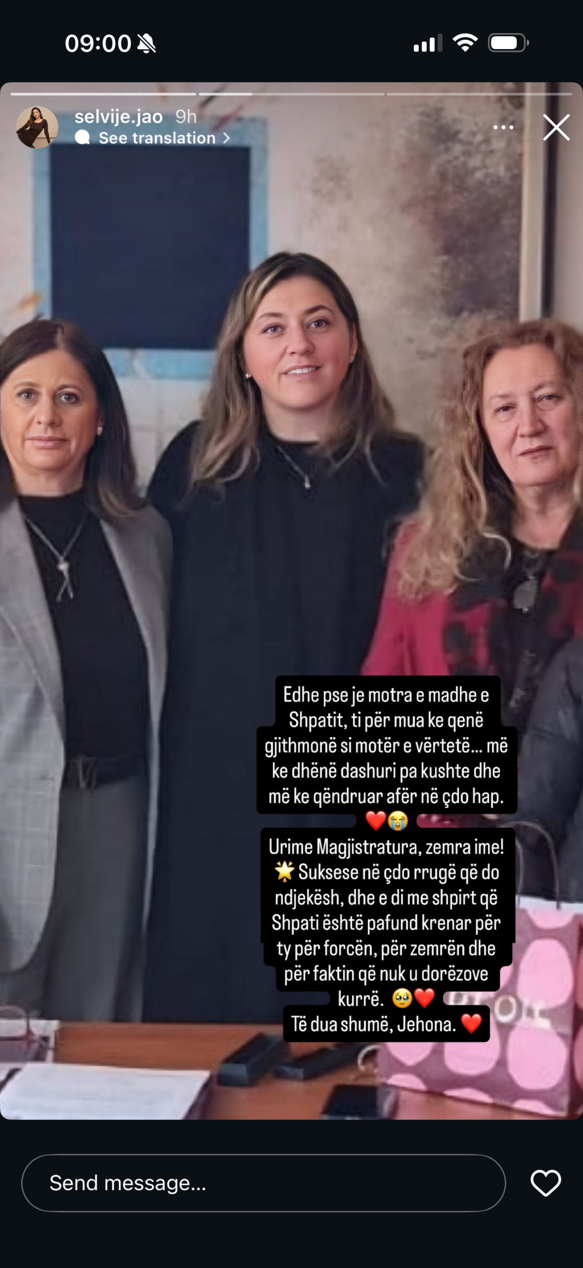 Urime magjistratura zemra ime! Shpati është pafund krenar për ty, për forcën, për zemrën dhe për faktin që nuk u dorëzove kurrë. Të dua shumë, Jehonë.”