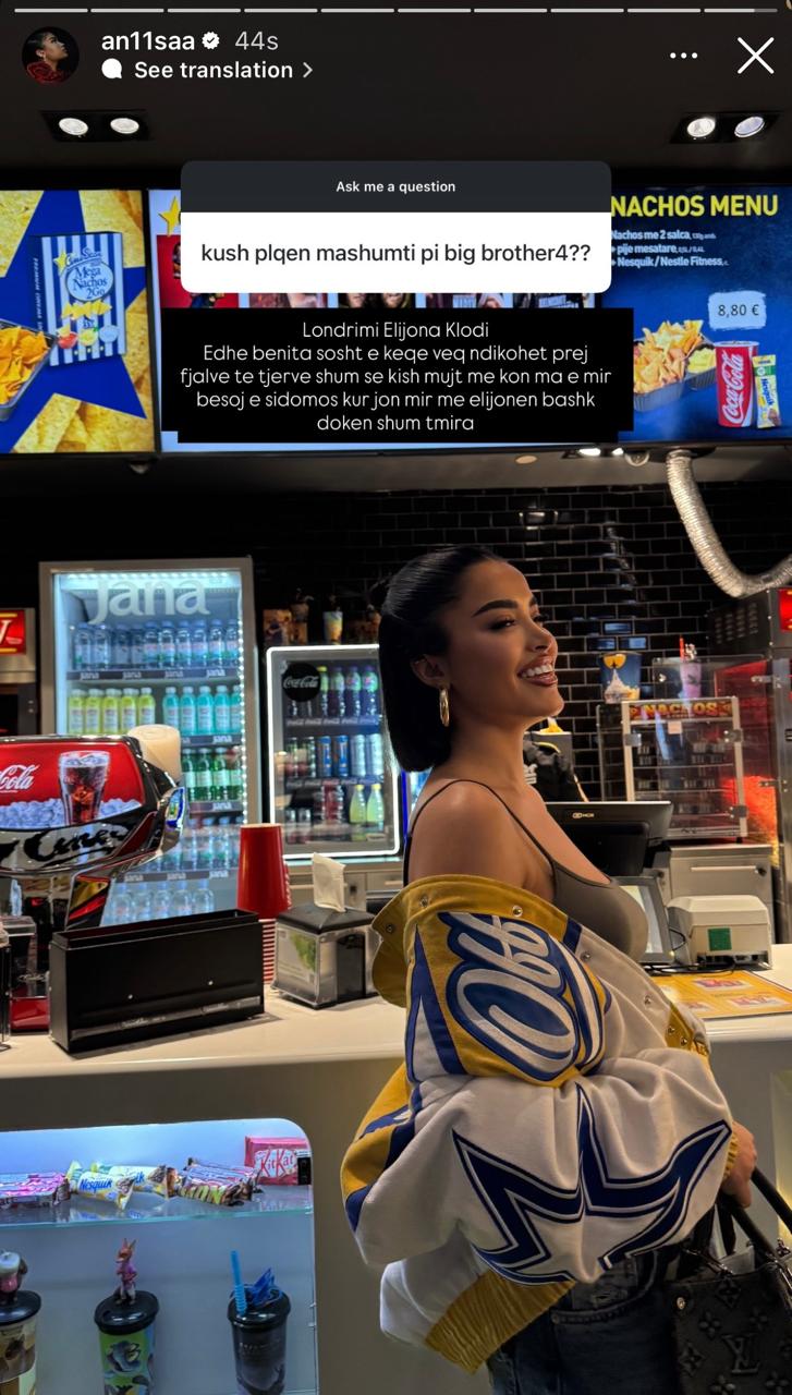 Ish-banorja e edicionit të tretë të Big Brother VIP Kosova, Anisa, ka ndarë së fundmi me ndjekësit e saj në rrjetet sociale mendimet rreth banorëve të edicionit aktual. Përmes një sesioni “Pyetje-Përgjigje” në Instagram, ajo u është përgjigjur kuriozitetit të fansave se cilët janë emrat që i pëlqejnë më shumë në këtë garë.