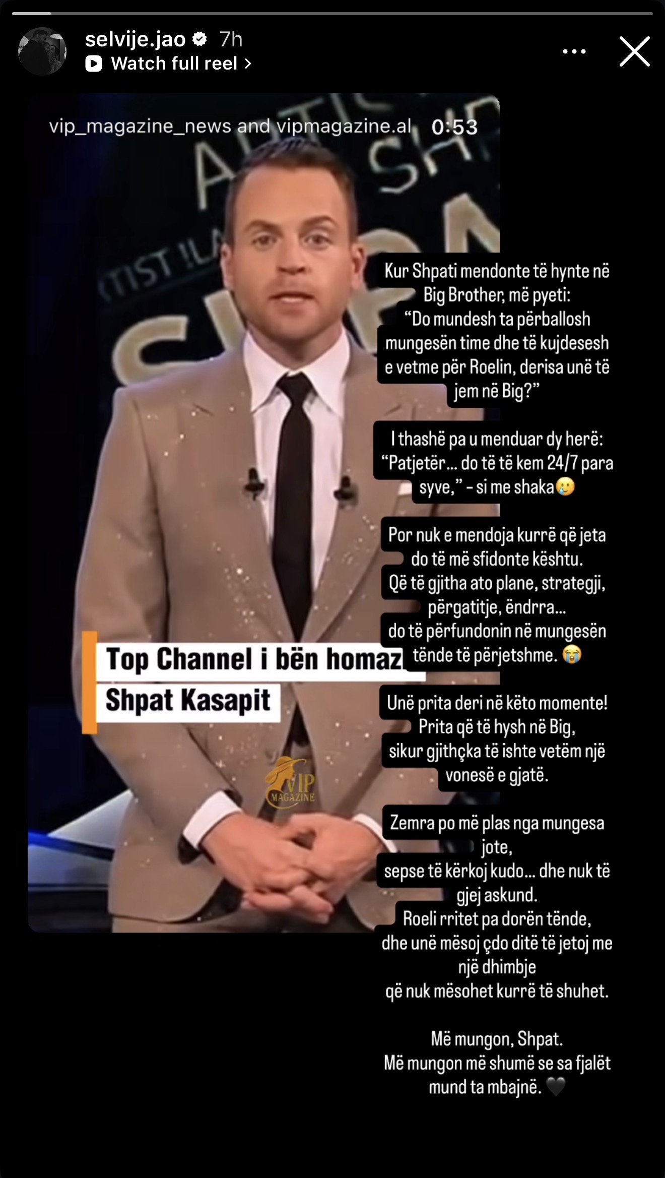 Mbrëmja e djeshme nuk ishte thjesht nata e parë e spektaklit “Big Brother VIP”, por një kujtesë e dhimbshme e një vendi që mbeti bosh. Gjatë ‘Prime-t’ të parë u mbajt një homazh prekës për këngëtarin e njohur Shpat Kasapi, i cili u nda nga jeta tragjikisht më 26 nëntor, vetëm pak javë para se të bëhej banor i shtëpisë më të famshme.