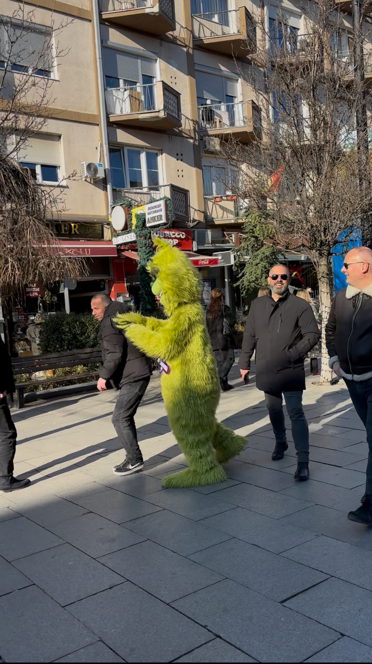 Dy ditët e fundit, rrugët dhe qendrat më të frekuentuara të qytetit janë “trazuar” nga një personazh i gjelbër, i cili ka marrë vëmendjen e të gjithëve. Grinchi është parë duke u shfaqur papritur, duke i befasuar qytetarët me humorin e tij karakteristik dhe duke sjellë skena qesharake që janë kthyer menjëherë në virale.
