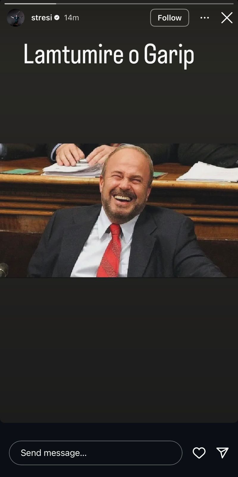 Në një postim në Instastory, ai ka ndarë një foto të Fatos Nanos, ku ka shkruar shkurt: “Lamtumirë o garip.”