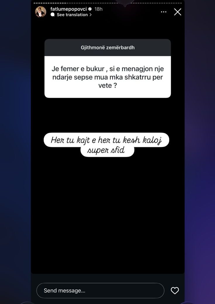 Këngëtarja e njohur Fatlume Popovci ka ndarë së fundmi me ndjekësit e saj në rrjetet sociale detaje të sinqerta rreth mënyrës se si po e përballon periudhën e vështirë pas divorcit.