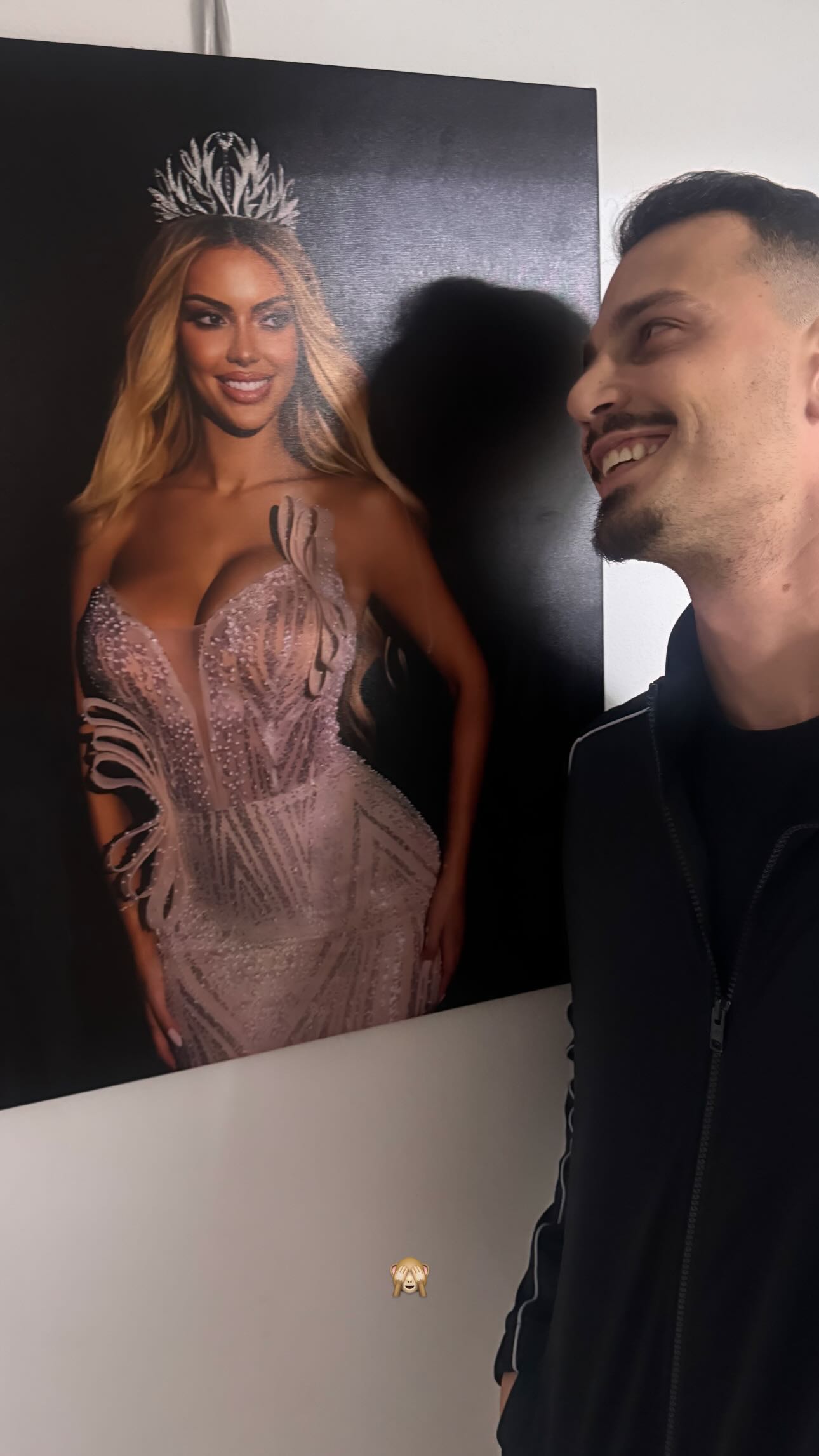 Së fundmi, Brikena ka ndarë në Instagram një moment mjaft romantik nga përditshmëria e tyre. Ajo ka publikuar një imazh ku shfaqet Mateo i buzëqeshur teksa shikon një portret gjigant të sajin. Në pikturë, Brikena paraqitet me një kurorë dhe një fustan elegant, ndërsa shikimi i Mateos tregon qartë admirimin për të. Kjo foto e shkrepur nga vetë modelja konfirmon se vëmendja e ish-finalistit të BBVA është tërësisht e përqendruar te partnerja e tij.