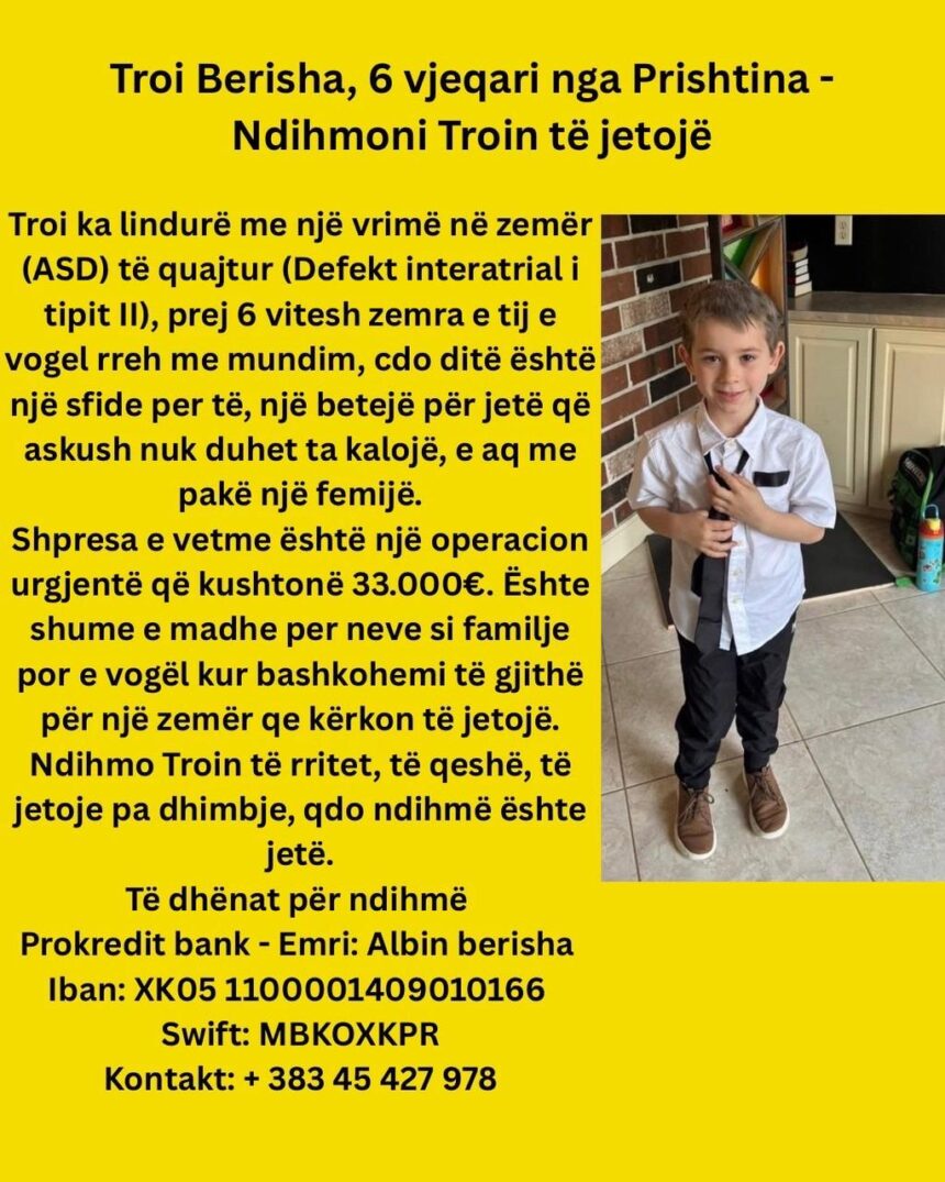 Troi Berisha, vogëlushi 6-vjeçar nga Prishtina, po përballet me një sfidë që asnjë fëmijë nuk duhet ta kalojë.