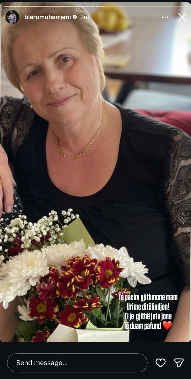 Blero ka publikuar një fotografi të nënës së tij, e cila shfaqet e buzëqeshur me një buqetë me lule në duar.